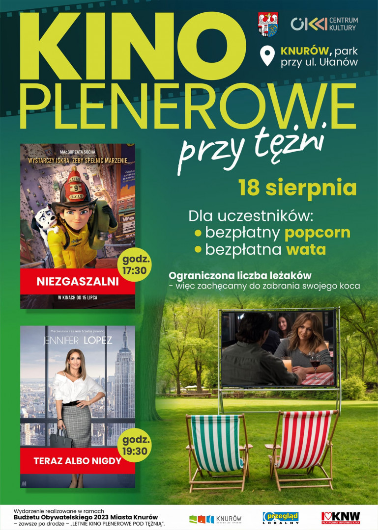 Projekt zakłada organizację jednego pokazu filmów w formie kina plenerowego w Knurowie  przy tężni w dniu 18 sierpnia 2024 r. Pokaz filmów odbył się w formie otwartej dla wszystkich chętnych.