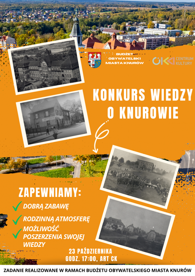 Organizacja konkursu z nagrodami skierowanego do całych rodzin z wiedzy o naszym mieście. Konkurs przewiduje rywalizację drużyn trzyosobowych (np. mama – tata- dziecko) w formie „pytanie-odpowiedź” (pytania otwarte i zamknięte) w tematyce historii Knurowa.  W konkursie wzięłoby udział od 5 do 10 drużyn z których dwie najlepsze awansują do wielkiego finału, gdzie powalczą o główną wygraną.
